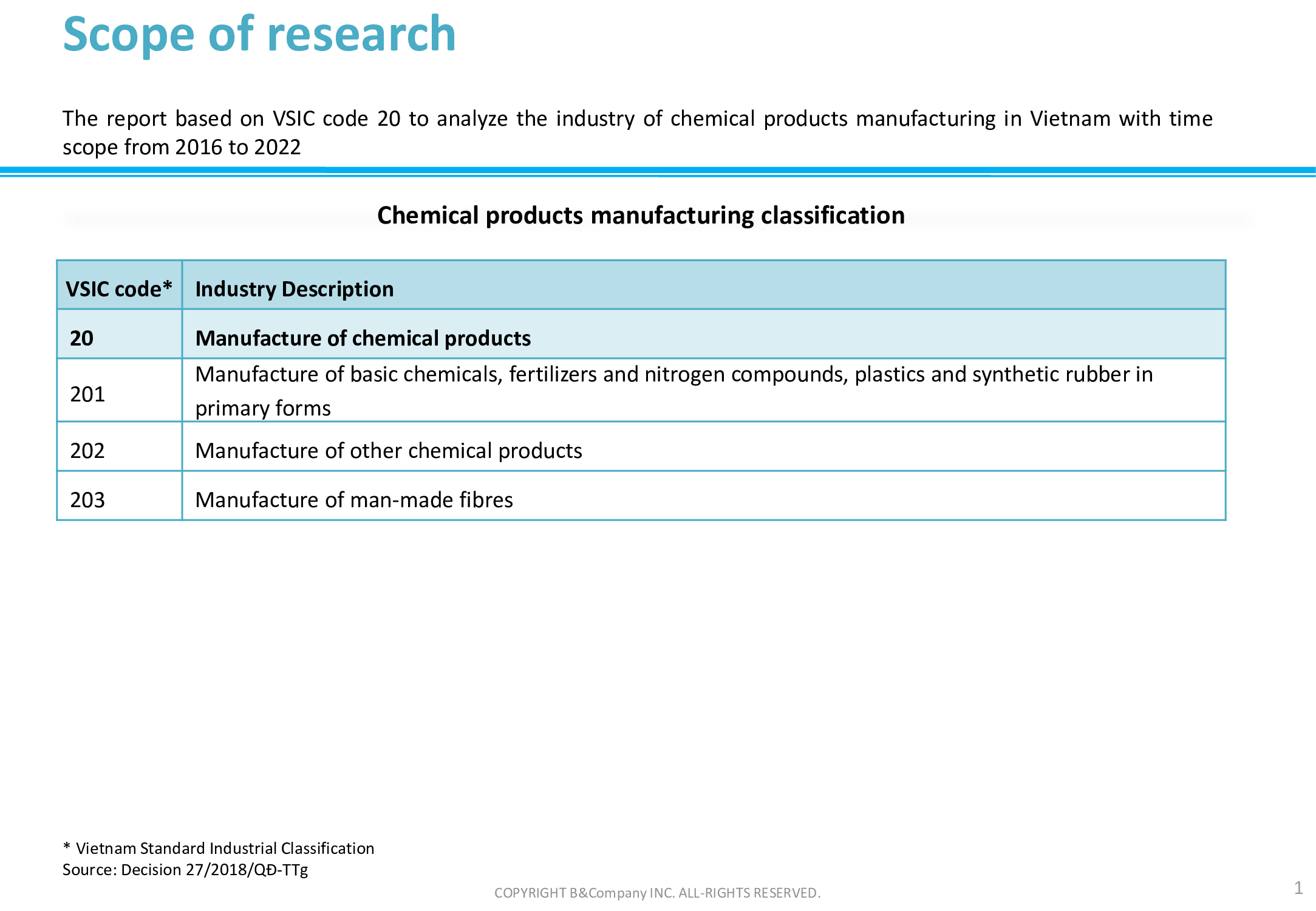 Dựa trên cơ sở dữ liệu B&Company, chúng tôi đã tạo ra các sản phẩm hóa họcbáo cáo sản xuất tại Việt Nam với phạm vi thời gian từ năm 2016-2022. Vui lòng xem bên dưới để biết thêm thông tin.